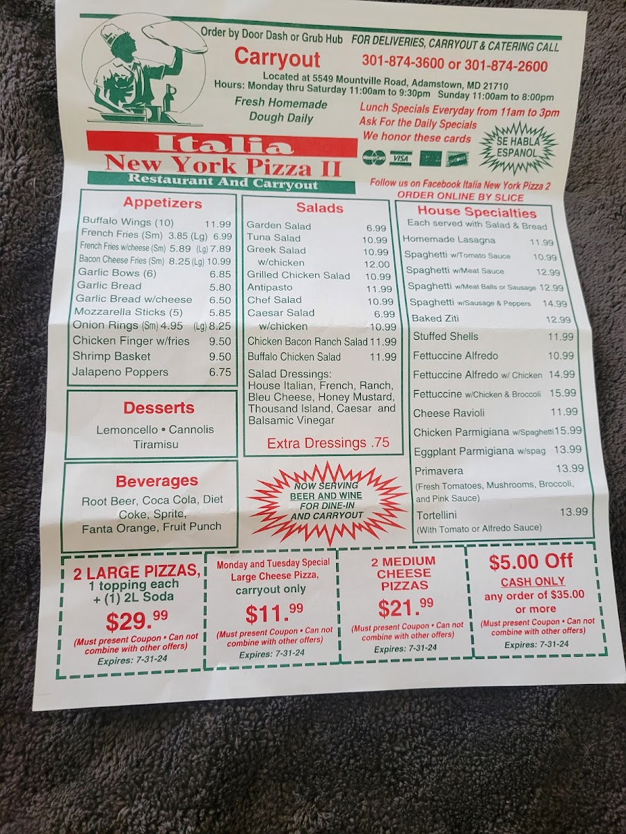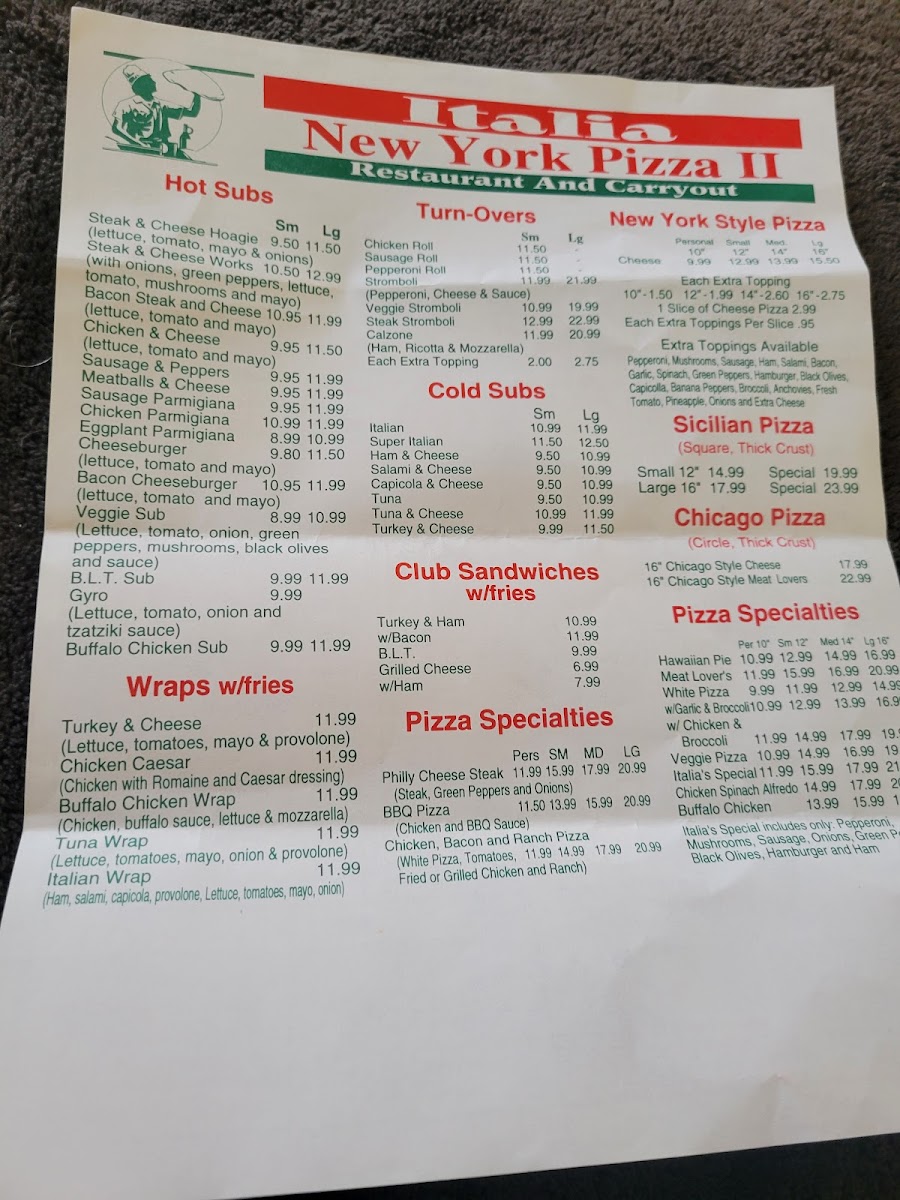 Welcome to Italia New York Pizza 2 - Adamstown, a hidden gem nestled at 5549 Mountville Rd, renowned for its authentic Italian flavors. Here, the menu is a delightful dive into a variety of offerings that cater to every craving. Start with their delectable 12 Pieces Wings for $15.99 or indulge in perfectly seasoned Garlic Bread for just $6.50. For a heartier bite, their Steak Stromboli ($13.99) and Calzone ($22.99) burst with flavor, while the pizzas are the star of the show, celebrated for their flawless crust and harmonious sweet-tangy sauce. Customers rave about the freshness of each ingredient, the delightful cheesiness, and satisfying toppings. With fantastic wings and superb service, diners frequently return, making it a family favorite. Experience a relaxed, inviting atmosphere, where delicious food meets friendly service, ensuring every visit feels like a special occasion.
